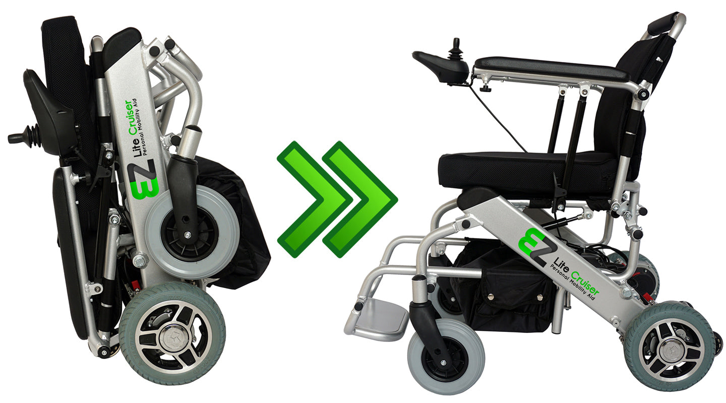 You will be amazed at how effortless it is to quickly and easily fold this chair to a compact size.... Unfolding is just as easy! Once you sit on the EZ Lite Cruiser ® you will know it is extremely durable and you will enjoy every minute of driving it.